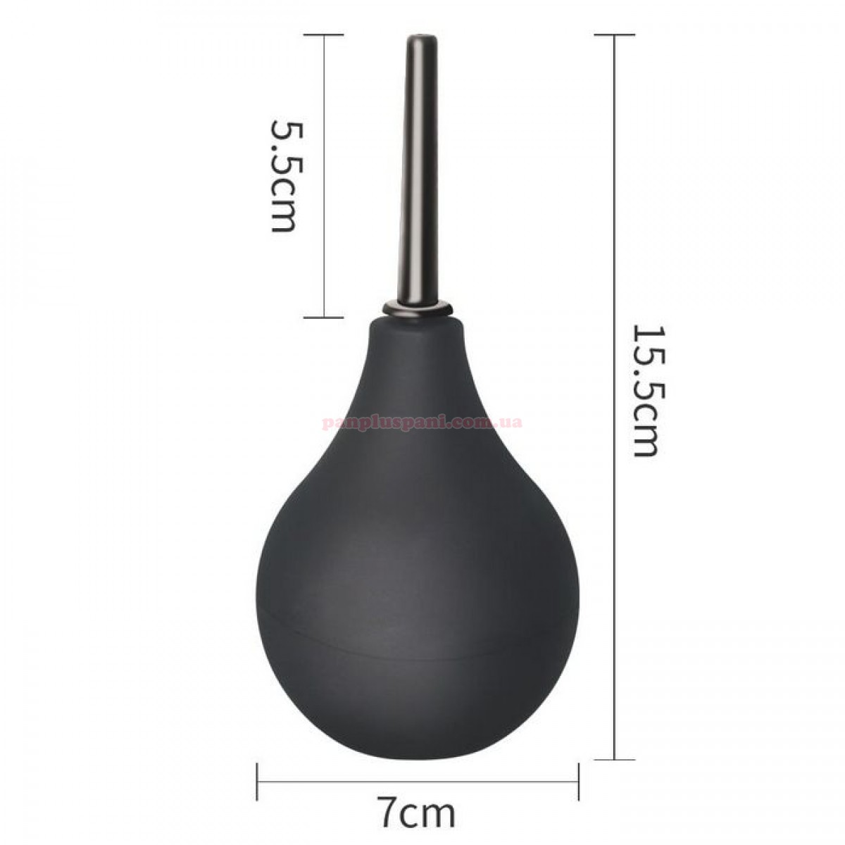 Розміри: довжина - 15,5 см, довжина кінчика - 5,5 см, Ø - 0,5 см, Ø груші - 7 см, вага 65 г.