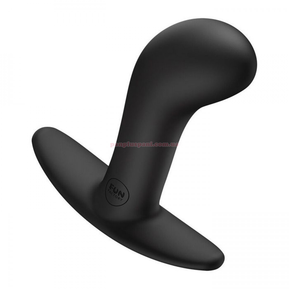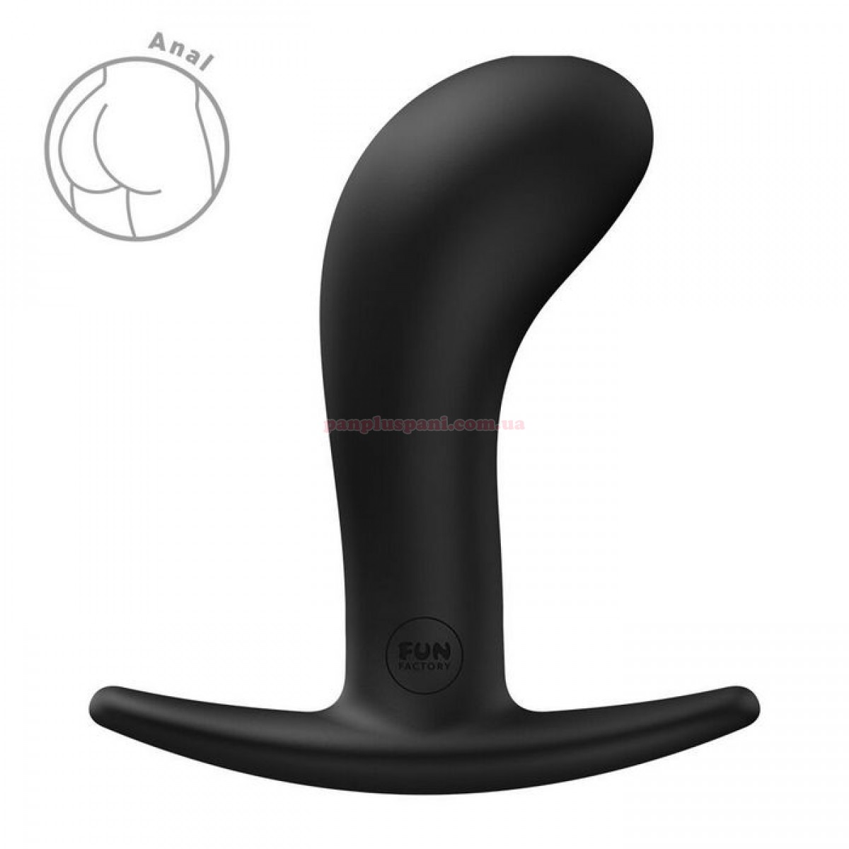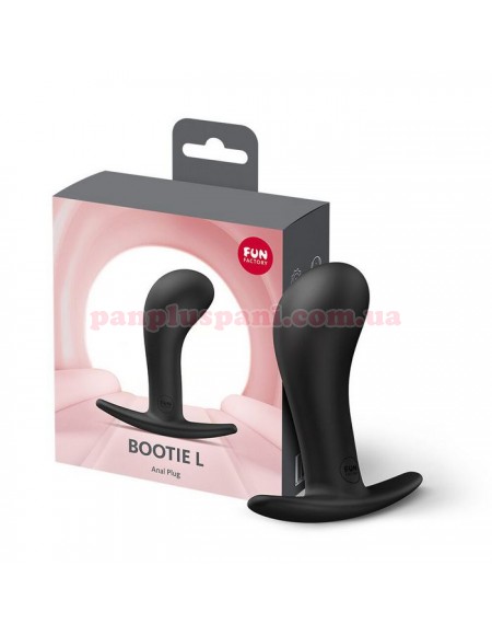 Анальна пробка Fun Factory Bootie створена для шанувальників значних розмірів та більш інтенсивної анальної стимуляції. Однаково добре підійде як жінкам, так і чоловікам і може використовуватися для носіння. Зручний обмежувач непомітний під повсякденним одягом і не заважає при ходьбі. Гладенька поверхня забезпечує ідеально плавне введення. Спеціально загнута форма кінчика іграшки дає можливість використовувати її в якості невеликого стимулятора простати. Жінкам під час статевого акту допоможе зробити стимуляцію зони "G" більш яскравою. Завдяки своїй формі вона притискає чутливу зону ближче до пеніса або фалоімітатора чи вібратора, що подарує додаткову стимуляцію при кожній фрикції.