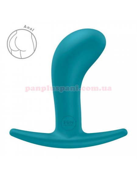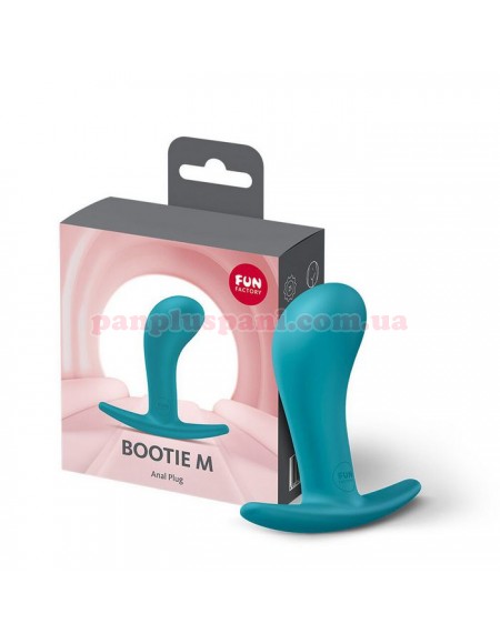Анальна пробка Fun Factory Bootie однаково добре підійде як жінкам, так і чоловікам і може використовуватися для носіння. Зручний обмежувач непомітний під повсякденним одягом і не заважає при ходьбі. Гладенька поверхня забезпечує ідеально плавне введення. Спеціально загнута форма кінчика іграшки дає можливість використовувати її в якості невеликого стимулятора простати. Жінкам під час статевого акту допоможе зробити стимуляцію зони "G" більш яскравою. Завдяки своїй формі вона притискає чутливу зону ближче до пеніса або фалоімітатора чи вібратора, що подарує додаткову стимуляцію при кожній фрикції.