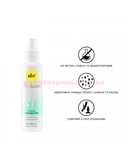 Очищуючий спрей pjur Toy Clean забезпечує ретельне та глибоке і водночас делікатне очищення секс-іграшкам. Спеціальна формула без спирту чудово підходить для таких чутливих матеріалів як латекс, гума, скло, силікон та шкіра.