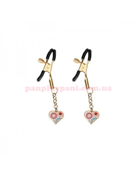 Затискачі для сосків Liebe Seele Heart Flowers одночасно БДСМ-аксесуар та елегантані інтимні прикраси. Вони декоровані ланцюжками з підвісками у вигляді сердечка, які будуть рухатися в такт з рухами вашого тіла, справляючи магнетичний вплив на партнера. Така прикраса обов'язково сподобається шанувальникам БДСМ-ігор.