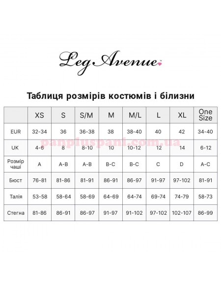Leg Avenue - це американський бренд бурлескного одягу, спідньої білизни та костюмів. Бренд відомий своїм оригінальним підходом до моди та створенням продуктів високої якості, які втілюють сексуальність та чуттєвість жінок. Завдяки американській якості одяг Leg Avenue користується величезною популярністю у покупців усього світу.