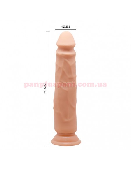 Фалоімітатор Barbara Alcmene реалістичного вигляду з м'якого, якісного, безпечного та еластичного матеріалу ТПГ (термопластична гума), приємного на дотик. Має великі розміри, чітко сформовану головку, яка звужується до кінчику, прямий і гнучкий стовбур, вкритий рельєфною венозною сіткою. Завдяки надійній присосці його можна міцно зафіксувати на будь-якій гладкій поверхні. Внутрішня гнучка спіраль дає можливість зафіксувати необхідний вигин стовбура. Великий розмір та рельєф забезпечать незабутнє відчуття заповнення і стимуляцію в найчутливіших точках вагіни. Для більшої реалістичності можна подігріти в теплій воді.