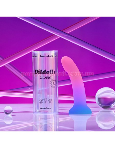 Фалоімітатор Love To Love Dildolls Utopia відрізняється яскравим зовнішнім виглядом - має чарівний кольоровий градієнт від синього до червоного, та особливо ніжний матеріал, не схожий на дотик ні на що інше. Підходить і для вагінального, і для анального використання. Виготовлений з дуже м'якого преміального силікону, який легко стискати і гнути, а через кілька секунд він повернеться до первісної форми.