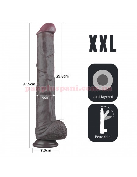 Фалоімітатор Dual layered Platinum Bendable Silicone Cock створений за технологією двошарового покриття для тих, хто поважає максимальну реалістичність і дуже великий розмір. Стовбур іграшки можна зафіксувати під бажаним кутом для найкращої стимуляції. Як і вся серія, модель відрізняється особливо реалістично опрацьованими деталями. Технологія двошарового покриття дає відчуття м'якого верхнього шару, який можна схопити двома пальцями і відтягнути від внутрішнього - так само як і на реальному члені.