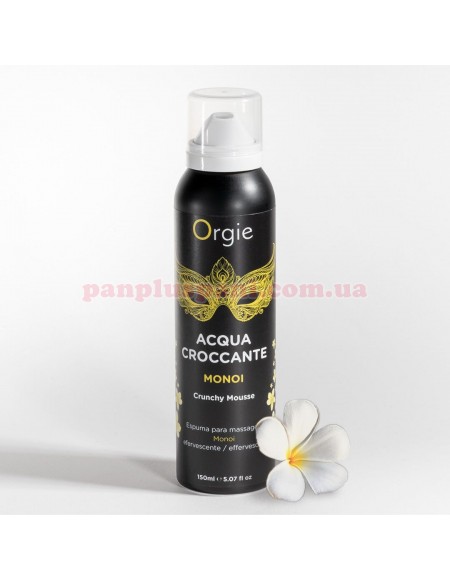 Масажна піна Orgie Acqua Croccante - незвичайний масажний засіб у вигляді ніжної хрусткої пінки. З кожним дотиком пружні бульбашки лопаються на шкірі і дарують приємне лоскітне відчуття. Запропонуйте партнеру/ці закрити очі - це посилить тактильне задоволення і створить неймовірне враження від кожного дотику. Піна дбайливо зволожує шкіру і не залишає липких слідів. Масажна піна Orgie Acqua Croccante - це ароматні хмаринки у ваших долонях, що перетворять масаж на справжню насолоду для тіла!