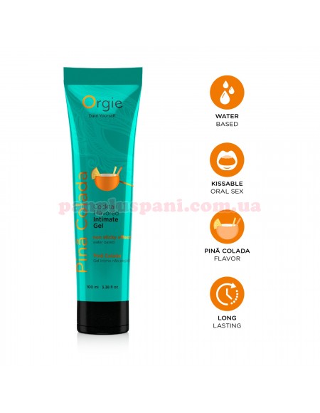 Лубрикант Orgie Lube Tube Cocktail Pina Colada - їстівна інтимна змазка на водній основі з коктейльної серії лубрикантів Orgie. Уявіть, що клубна вечірка з коктейлями відбувається у вашому ліжку і тільки для вас! Приємний смак гелю додає апетиту до оральних пестощів. Збалансована формула з гліцерином, касторовою олією та молочною кислотою забезпечує тривале зволоження, комфортне ковзання і підтримку природнього рівня pH. Лубрикант Orgie Lube Tube Cocktail підходить для орального та вагінального сексу. Насолоджуйтеся новим смаком вашого задоволення!