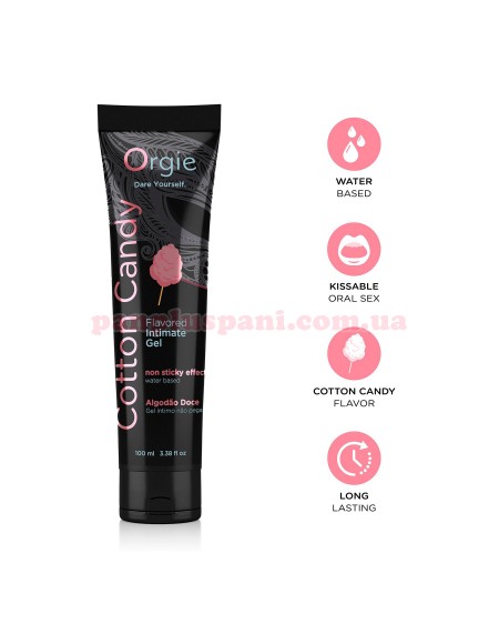 Лубрикант Orgie Lube Tube Cotton Candy - інтимний гель на водній основі з приємним смаком та ароматом, що робить цей продукт також ідеальним для орального сексу. Гель забезпечує зволоження і тривале ковзання - ніяких натирань під час сексу, тільки комфорт і задоволення! З цим лубрикантом моменти вашої близькості будуть по-справжньому солодкі.