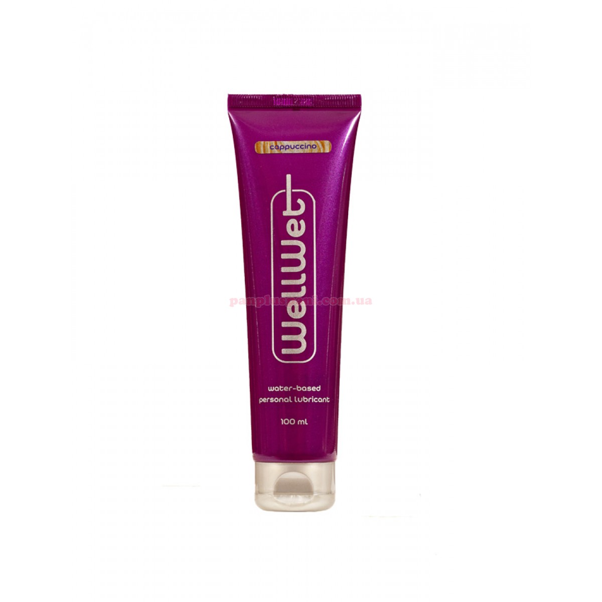 Лубрикант WellWet Cappuccino з колекції смакових лубрикантів має приємний смак капучино. Добре підійде тим, хто прагне урізноманітнити інтимне життя, а також людям із чутливою шкірою та слизовою, що віддають перевагу натуральним зволожуючим компонентам. Він має рідку шовковисту консистенцію, дуже слизький, не липне під час використання і запобігає сухості та подразненню. Підходить для орального та вагінального застосування. Не містить шкідливих для здоров'я речовин, не залишає слідів і легко змивається водою. Сумісний з презервативами та інтимними іграшками.