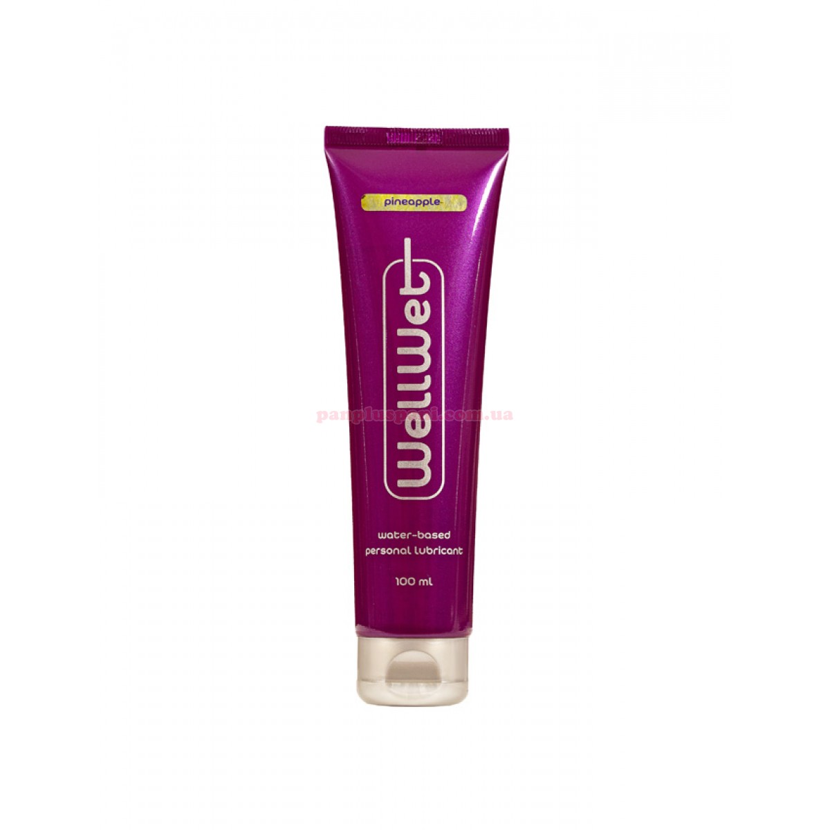 Лубрикант WellWet Pineapple з колекції смакових лубрикантів має приємний ананасовий смак. Добре підійде тим, хто прагне урізноманітнити інтимне життя, а також людям із чутливою шкірою та слизовою, що віддають перевагу натуральним зволожуючим компонентам. Він має рідку шовковисту консистенцію, дуже слизький, не липне під час використання і запобігає сухості та подразненню. Підходить для орального та вагінального застосування. Не містить шкідливих для здоров'я речовин, не залишає слідів і легко змивається водою. Сумісний з презервативами та інтимними іграшками.