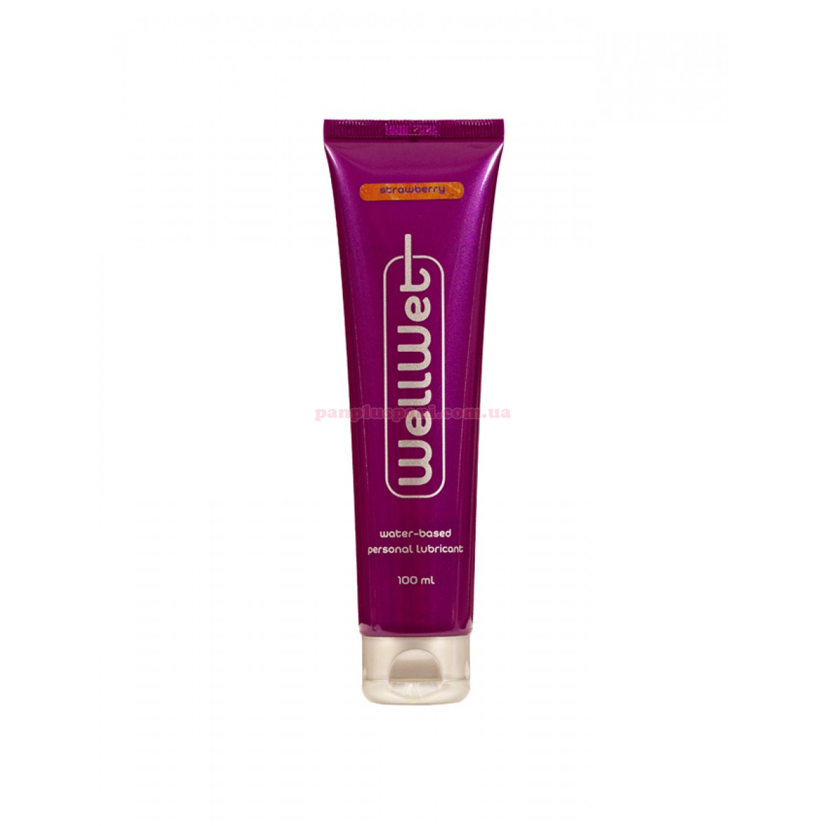 Лубрикант WellWet Strawberry з колекції смакових лубрикантів має приємний смак полуниці. Добре підійде тим, хто прагне урізноманітнити інтимне життя, а також людям із чутливою шкірою та слизовою, що віддають перевагу натуральним зволожуючим компонентам. Він має рідку шовковисту консистенцію, дуже слизький, не липне під час використання і запобігає сухості та подразненню. Підходить для орального та вагінального застосування. Не містить шкідливих для здоров'я речовин, не залишає слідів і легко змивається водою. Сумісний з презервативами та інтимними іграшками.