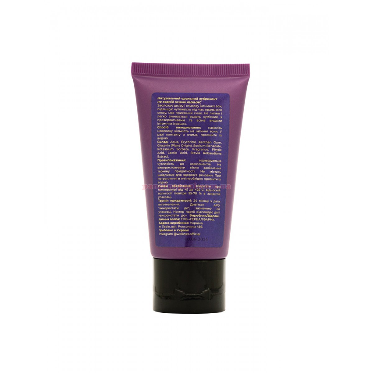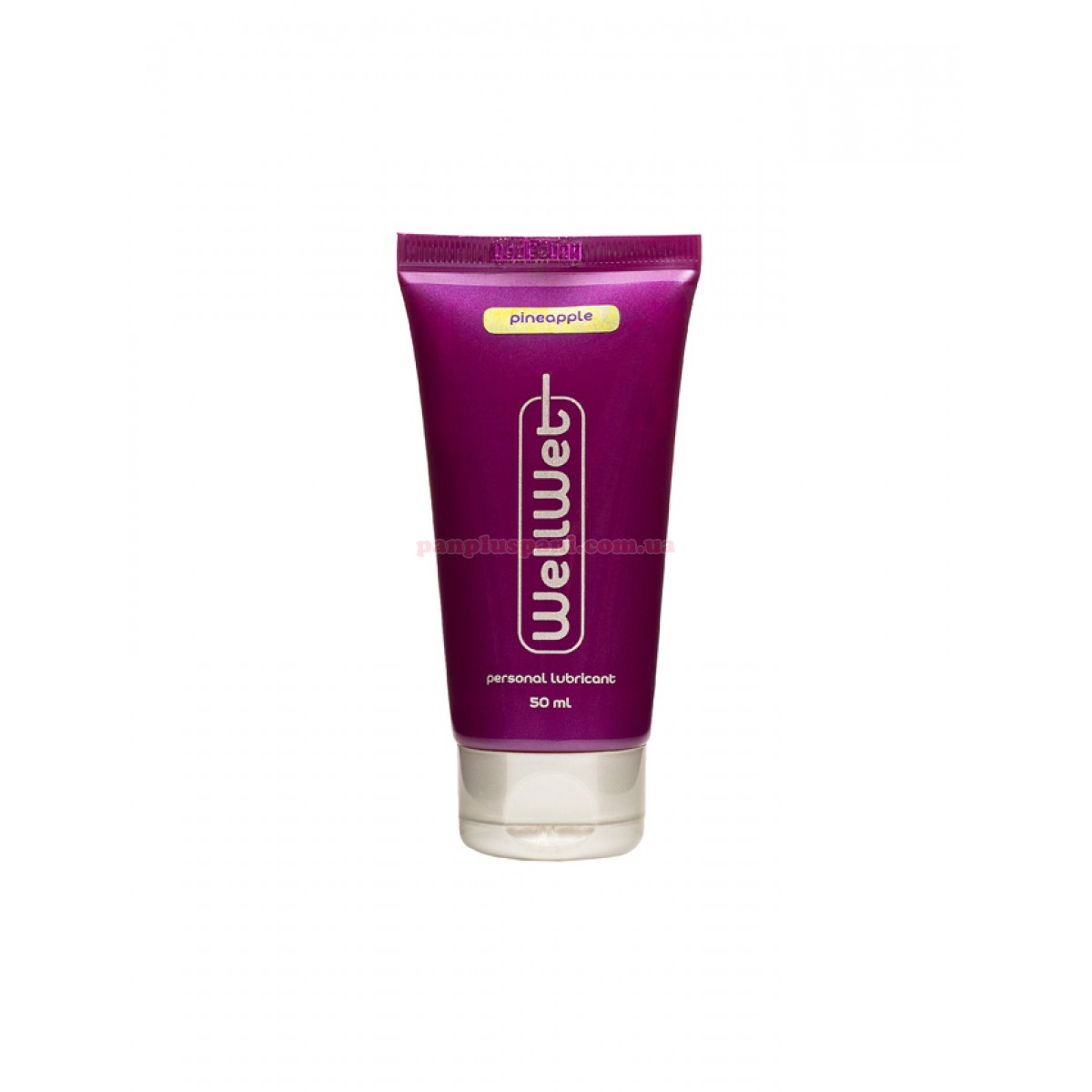 Лубрикант WellWet Pineapple з колекції смакових лубрикантів має приємний ананасовий смак. Добре підійде тим, хто прагне урізноманітнити інтимне життя, а також людям із чутливою шкірою та слизовою, що віддають перевагу натуральним зволожуючим компонентам. Він має рідку шовковисту консистенцію, дуже слизький, не липне під час використання і запобігає сухості та подразненню. Підходить для орального та вагінального застосування. Не містить шкідливих для здоров'я речовин, не залишає слідів і легко змивається водою. Сумісний з презервативами та інтимними іграшками.