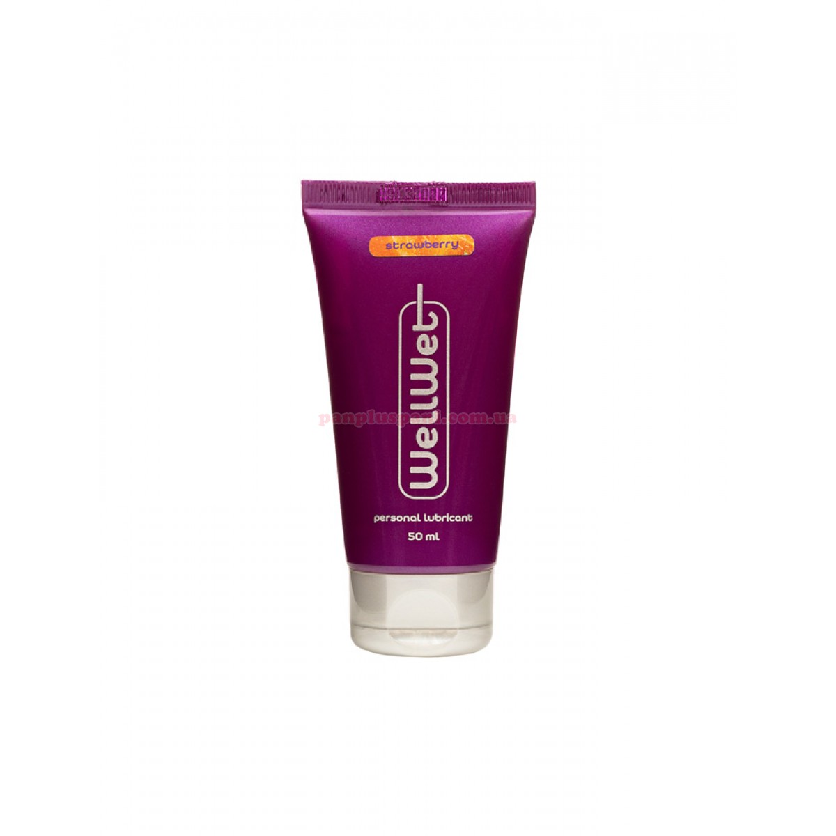 Лубрикант WellWet Strawberry з колекції смакових лубрикантів має приємний смак полуниці. Добре підійде тим, хто прагне урізноманітнити інтимне життя, а також людям із чутливою шкірою та слизовою, що віддають перевагу натуральним зволожуючим компонентам. Він має рідку шовковисту консистенцію, дуже слизький, не липне під час використання і запобігає сухості та подразненню. Підходить для орального та вагінального застосування. Не містить шкідливих для здоров'я речовин, не залишає слідів і легко змивається водою. Сумісний з презервативами та інтимними іграшками.
