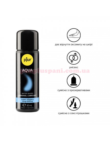 Лубрикант Pjur Aqua - змазка на водній основі преміум-якості для чистої насолоди! Чудово підходить для щоденного сексу та регулярного догляду за тілом - завжди зволожує, захищає від натирання та залишає тільки приємні відчуття.
