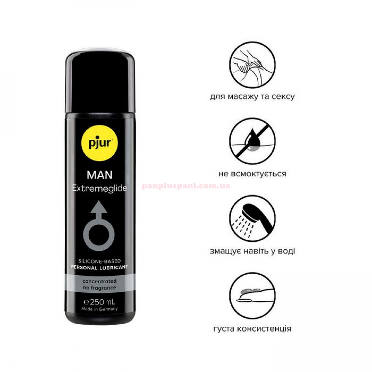 Лубрикант Pjur MAN Extremeglide - концентрована силіконова змазка для екстремального ковзання. Дуже слизький і довгограючий лубрикант для тих, хто любить отримувати максимум задоволення. Цей гель також чудово підійде і для масажу.