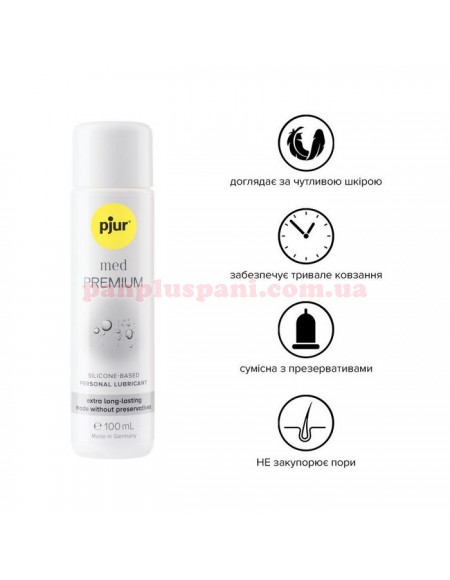 Лубрикант Pjur MED Premium - силіконова змазка для дуже довгого ковзання спеціально для чутливої шкіри. Цей гель також прекрасно підійде і для масажу.