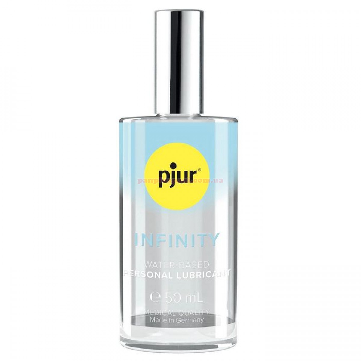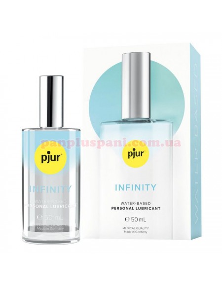 Лубрикант Pjur INFINITY вражає своєю схожістю з природною жіночою змазкою. Втілення найвищої німецької якості в лаконічній скляній пляшці з помпою-дозатором для максимального комфорту. Високоякісні інгредієнти в складі не тільки забезпечують гладеньке чуттєве ковзання, але й піклуються навіть про найчутливішу шкіру, зволожують та живлять її. Серед компонентів змазки немає олій, гліцерину, барвників, запашників та ароматизаторів. Також продукт не містить парабенів і консервантів, можна сміливо наносити на найделікатніші ділянки тіла. Безпечність продукту підтверджена дерматологічними випробуваннями.