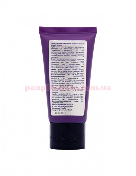 Лубрикант швидко вбирається шкірою, залишаючи приємне зволоження без жирних слідів. Гіалуронова кислота сприяє збереженню природної вологи, підтримує здоров’я шкіри та допомагає відновлювати мікропошкодження. Фізіологічний рН підтримує природний кислотно-лужний баланс інтимної зони, знижує ризик подразнень та дискомфорту. Містить молочну та фітинову кислоти, які сприяють підтримці здорового мікробіому інтимної зони, та мають легку антибактеріальну дію.