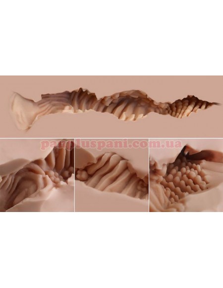 Мастурбатор виготовлений з високоякісного і безпечного полімеру ТПЕ (термопластичний еластомер). Це дало змогу створити неймовірну реалістичність не тільки зовні, а й всередині. Текстура поверхні м'яка і шовковиста, швидко нагрівається і надає іграшці ще більше реалістичності. Завдяки еластичності матеріалу він здатний розтягуватися і підлаштовуватися під будь-який член, незалежно від його розмірів. Для легкого очищення обидва канали зроблені наскрізними.
