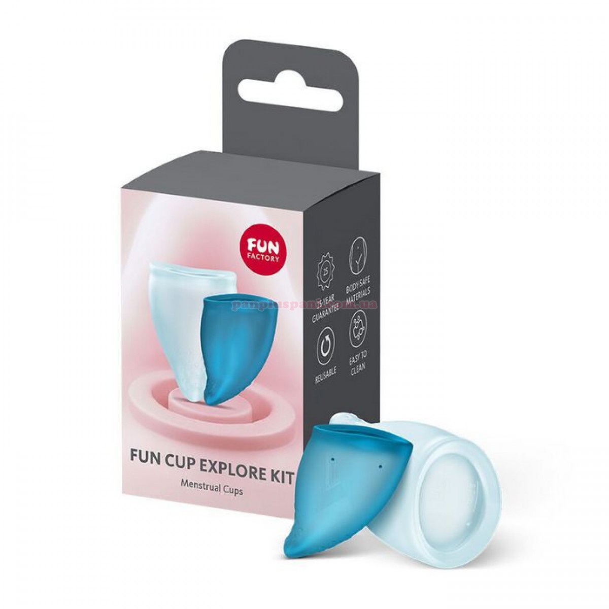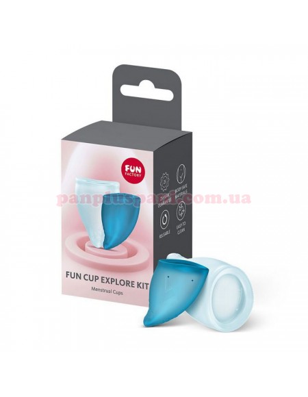 Набір менструальних чаш Fun Factory Fun Cup Explore Kit складається з двох чаш з місткістю 20 мл і 30 мл. Це екологічне, комфортне та економічне рішення для інтимної гігієни, і чудова альтернатива тампонам. Набір стане гарним придбанням для тих, хто хоче мати чаші відповідної місткості для днів із різною інтенсивністю виділень. Чаші зручно та непомітно розташовуються, щільно прилягають до стінок і нічого не пропускають. За рахунок цього вбирають у 4 - 6 разів більше за стандартний тампон. Мають зручну для введення і розташування конусоподібну форму та спеціальний рельєфний кінчик, який дає змогу комфортно вводити та виймати чашу. Підходять для занять спортом та інших активних дій. Вони підлаштовується під форму тіла, а щільний обідок утримує їх на місці.