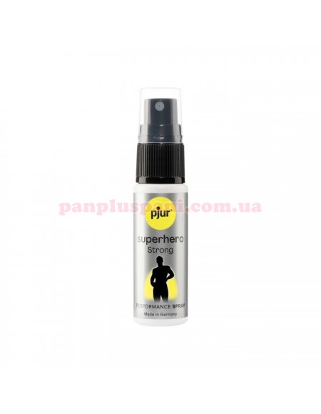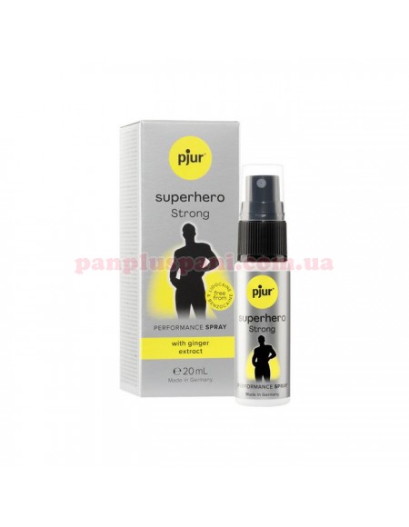 Пролонгатор спрей pjur Superhero Strong Spray розроблений для подовження статевого акту і запобігання передчасної еякуляції у чоловіків. На відміну від спрею pjur Superhero має насичену оліїсту консистенцію, більш концентровану формулу з високою концентрацією інгредієнтів, екстракт імбиру та цитрусовий аромат. Завдяки невидимій плівочці, яка вкриє весь статевий орган після нанесення спрея відбудеться зниження надчутливості, що буде сприяти тривалому сексу. Без лідокаїну та бензокаїну. Перед початком використання проведіть тест на невеликій ділянці шкіри. У разі прояву алергічної реакції не використовувати!