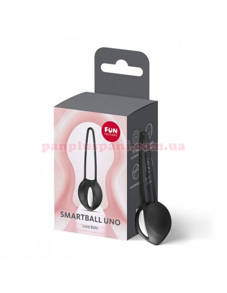 Вагінальна кулька Fun Factory Smartball Uno призначена для тренувань м'язів тазового дна по вправах Кегеля на початковому етапі. Дає можливість підтримувати м'язи вагіни в тонусі, надасть їм еластичність, пружність і підвищує чутливість. Має рельєфну поверхню та металеву кулю всередіні. Куля постійно рухається і створює ефект інерційної вібрації, та постійно зміщує центр тяжіння тренажеру. Завдяки ергономічній формі дуже легко вводиться та зручно і комфортно вилучається за допомогою надійної петлі. Вкритий якісним медичним силіконом, приємним на дотик та має вставку з гіпоалергенного АБС-пластику. Рекомендований для жінок, які вирішили спробувати тренування по вправах Кегеля. Тренажер забезпечує необхідне навантаження для початківців. Для більш приємного використання можна подігріти в теплій воді.
