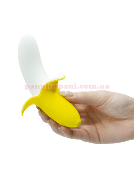 Вібратор Banana Bliss Mini має вигляд напівочищеного стиглого банану. Такий дизайн сподобається шанувальницям яскравих та незвичайних іграшок. Він хоч і не схожий на класичну іграшку для дорослих, але достатньо потужний, щоб задовольнити найвибагливіших. Кут нахилу гладенького гнучкого стовбуру забезпечує ефективну стимуляцію зони "G", а невеликі відростки, які імітують бананову шкірку - додатковий вплив на зону клітора та промежину. Завдяки нейтральному вигляду і компактним розмірам є вдалим варіантом іграшки для подорожей. Також може стати чудовим варіантом на роль першої іграшки для початківців. Для більшого комфорту можна перед використанням трохи підігріти стовбур вібратора в теплій воді.