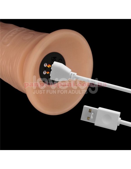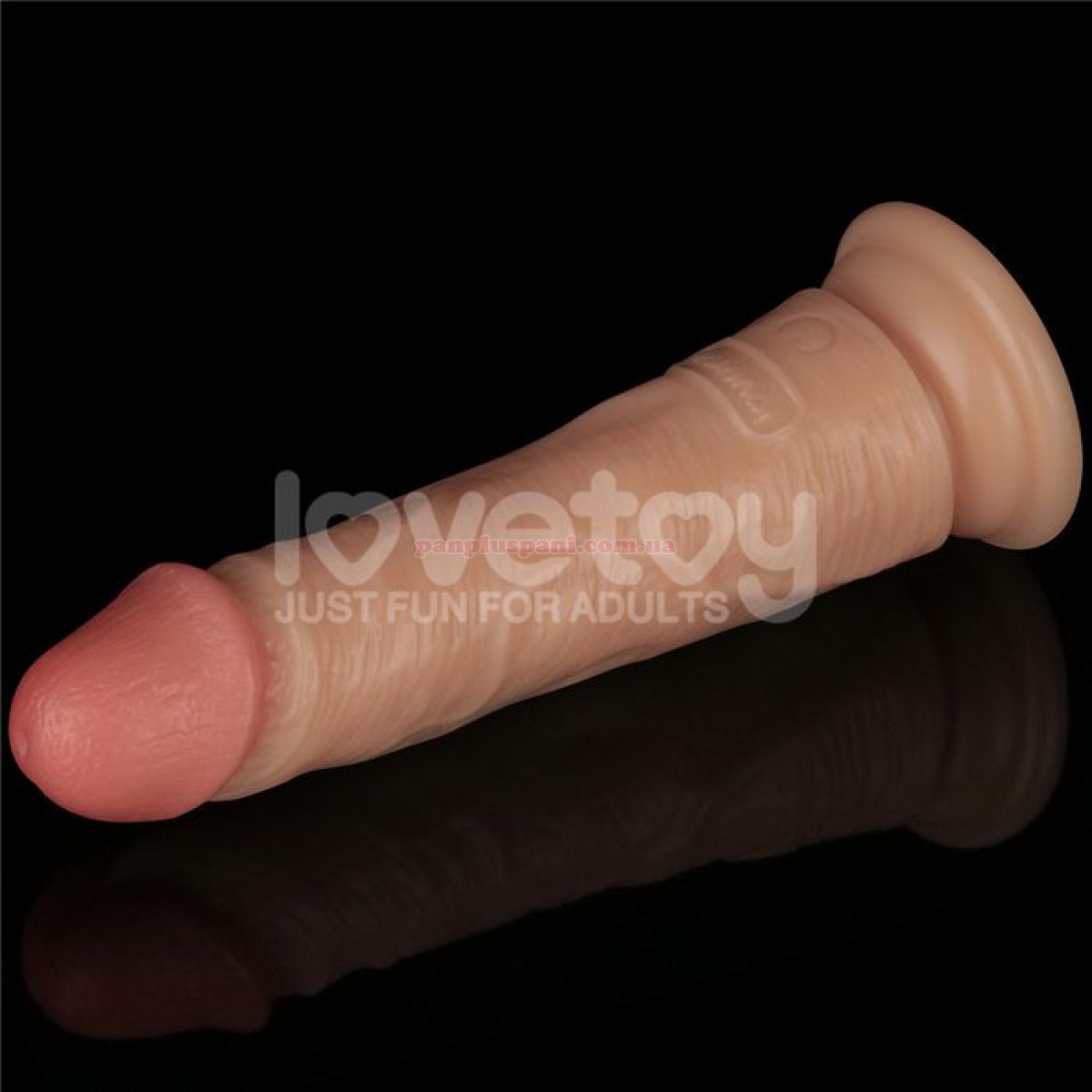 Виготовлений з безпечного ПВХ (полівінілхлорид), приємного на дотик. Розмір забезпечить відчуття заповнення і стимуляцію в найчутливіших точках. Оснащений потужним мотором з 10 режимами вібрації. Керування іграшкою за допомогою єдиної кнопки над присоскою. Для більшої реалістичності можна підігріти стовбур вібратора в теплій воді.